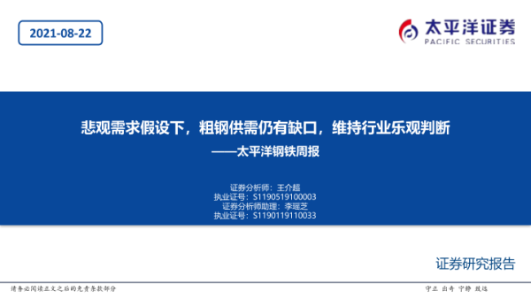 【太平洋证券】【20210822】太平洋钢铁周报:悲观需求假设下,粗钢供需仍有缺口,维持行业乐观判断-54页