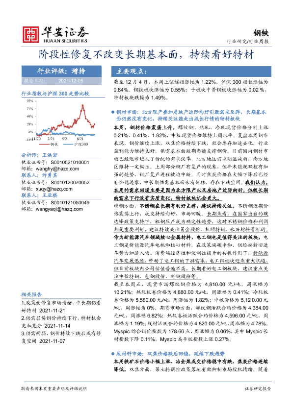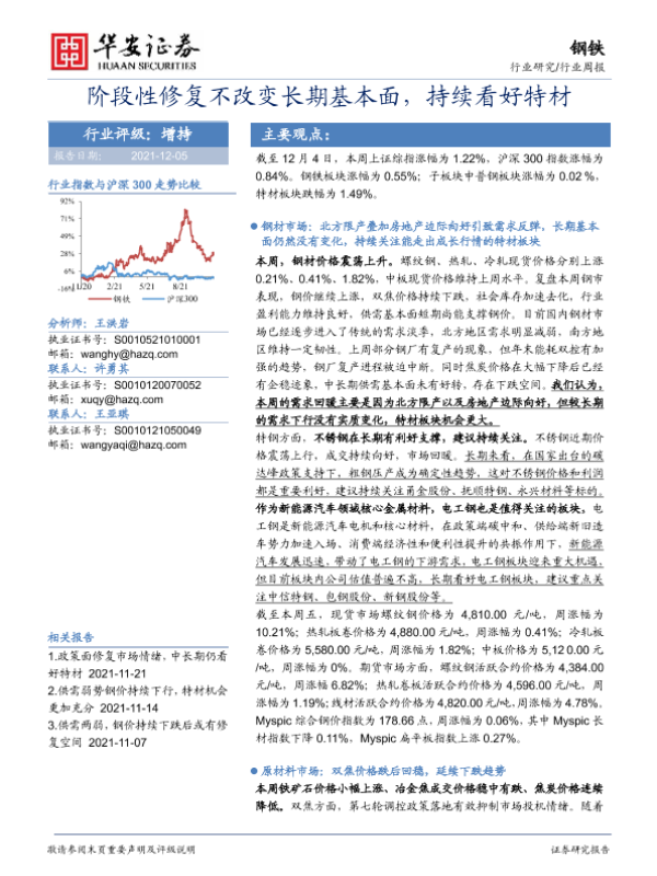 【华安证券】【20211205】20211205-华安证券-钢铁行业周报:阶段性修复不改变长期基本面,持续看好特材-24页