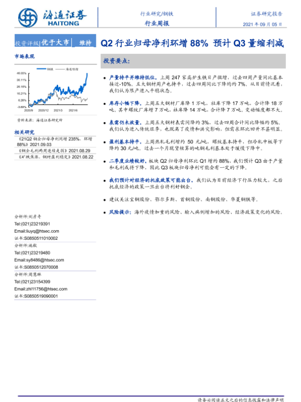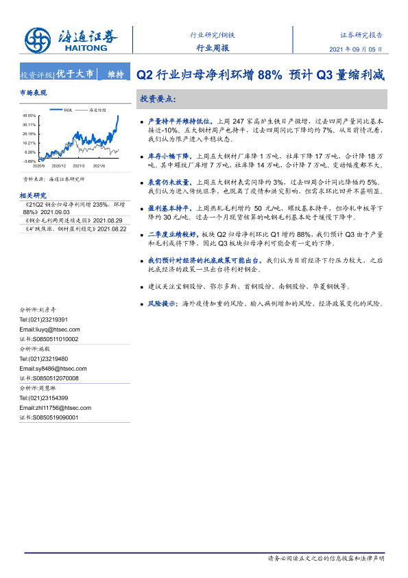 【海通证券】【20210905】20210905-海通证券-钢铁行业周报:Q2行业归母净利环增88%预计Q3量缩利减-13页
