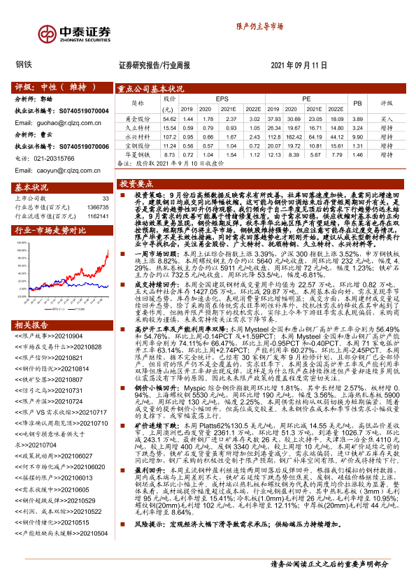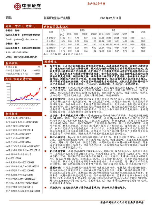 【中泰证券】【20210911】20210911-中泰证券-钢铁行业周报:限产仍主导市场-12页
