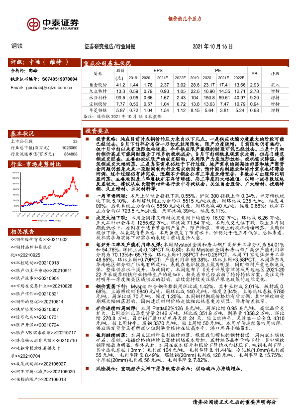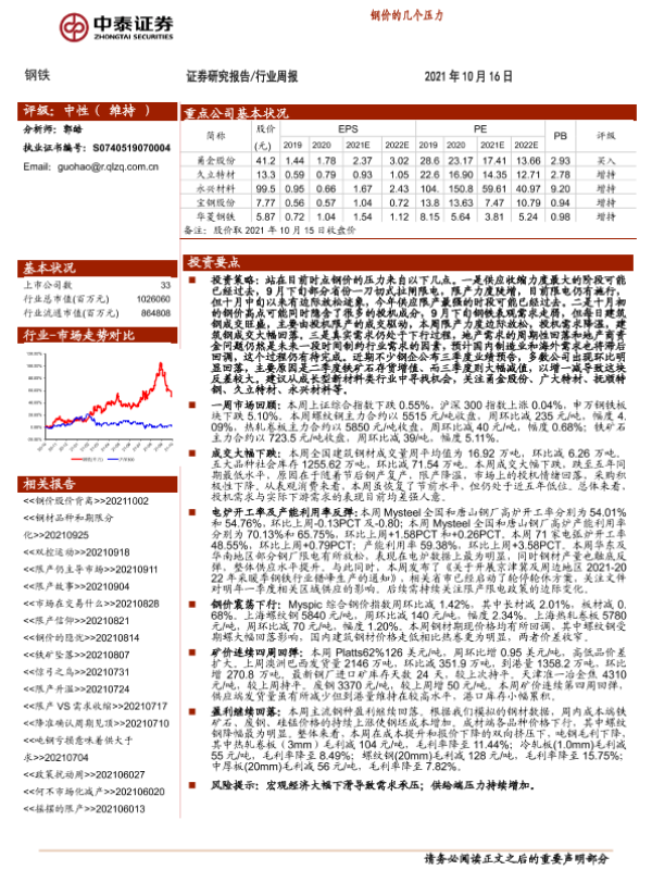 【中泰证券】【20211016】20211016-中泰证券-钢铁行业周报:钢价的几个压力-13页