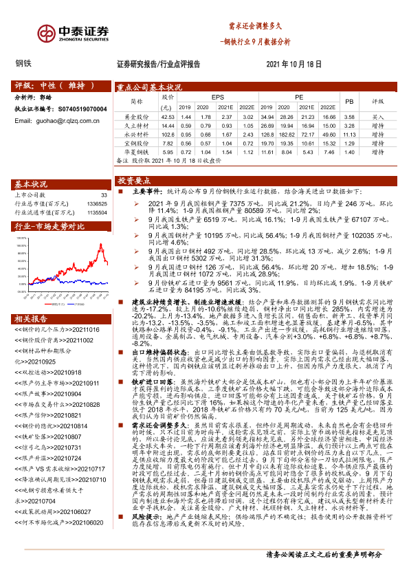 【中泰证券】【20211018】钢铁行业9月数据分析:需求还会调整多久-4页