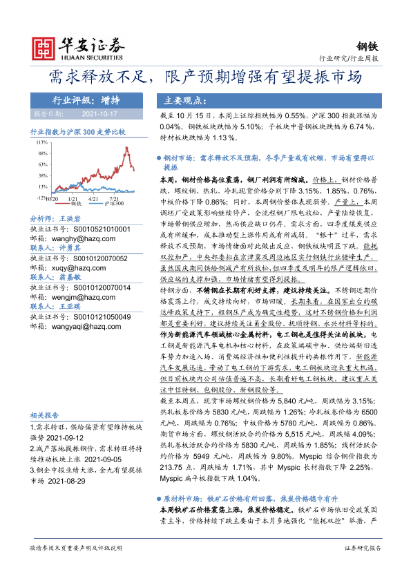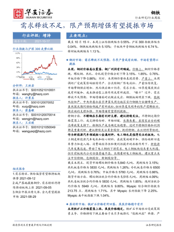 【华安证券】【20211017】20211017-华安证券-钢铁行业周报:需求释放不足,限产预期增强有望提振市场-24页