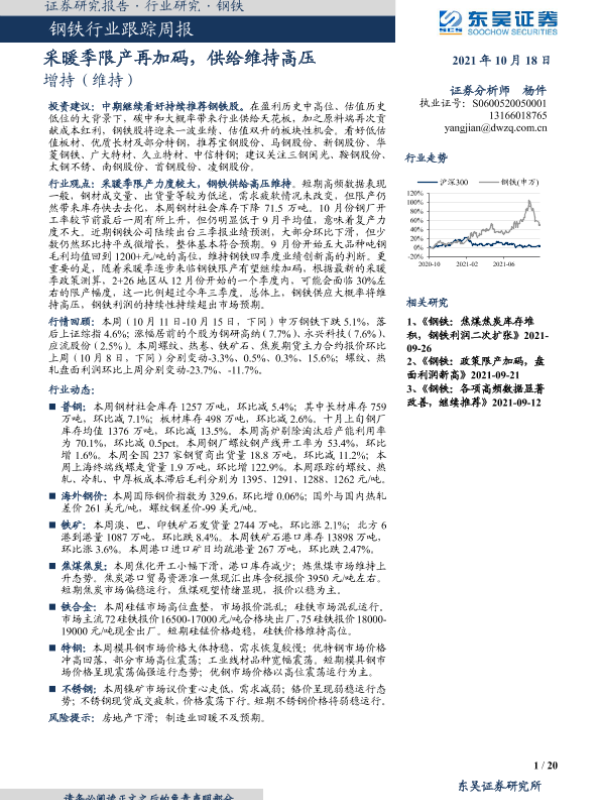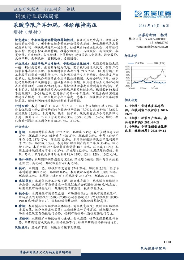 【东吴证券】【20211018】20211018-东吴证券-钢铁行业跟踪周报:采暖季限产再加码,供给维持高压-20页