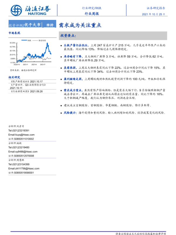 【海通证券】【20211025】20211025-海通证券-钢铁行业周报:需求成为关注重点-13页