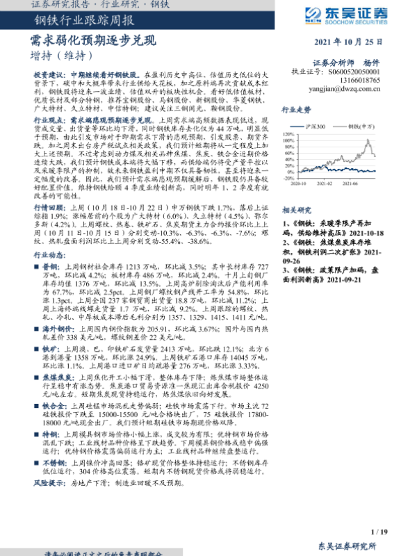 【东吴证券】【20211025】20211025-东吴证券-钢铁行业跟踪周报:需求弱化预期逐步兑现-19页