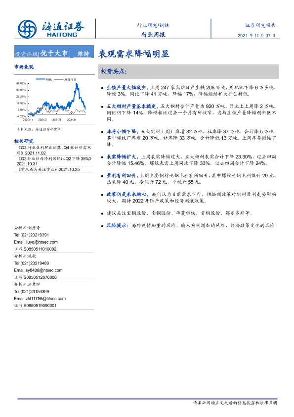【海通证券】【20211107】钢铁行业周报:表观需求降幅明显-13页