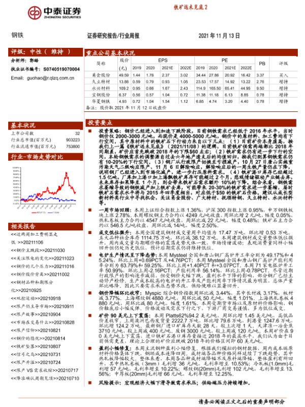 【中泰证券】【20211113】20211113-中泰证券-钢铁行业周报:铁矿远未见底2-12页