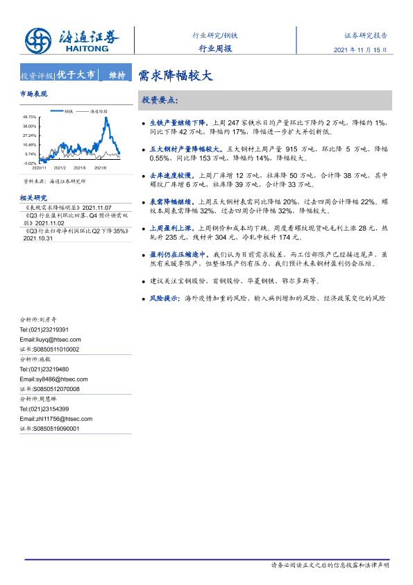 【海通证券】【20211115】20211115-海通证券-钢铁行业周报:需求降幅较大-13页
