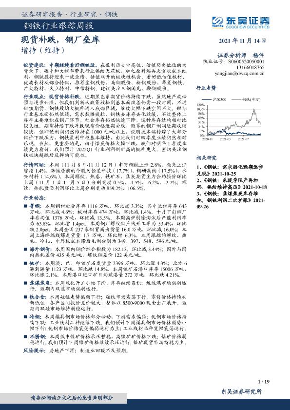 【东吴证券】【20211114】20211115-东吴证券-钢铁行业跟踪周报:现货补跌,钢厂垒库-19页