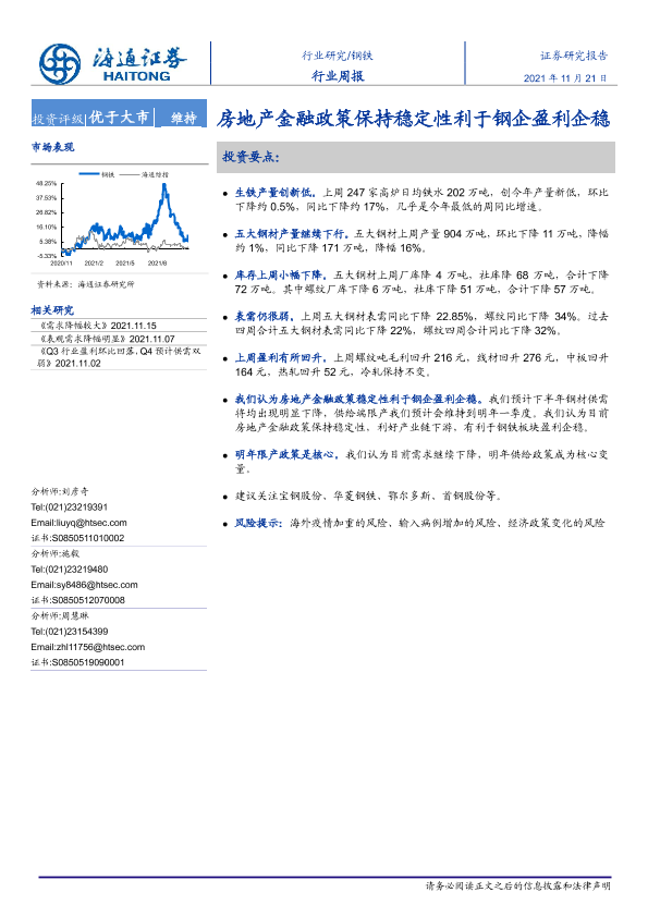 【海通证券】【20211121】20211121-海通证券-钢铁行业周报:房地产金融政策保持稳定性利于钢企盈利企稳-13页