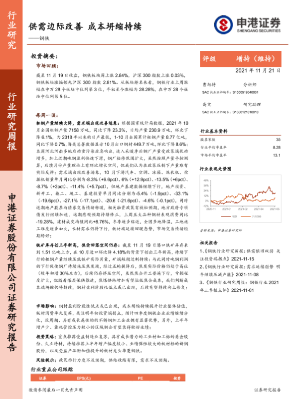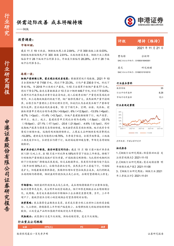 【申港证券】【20211121】钢铁:供需边际改善 成本坍缩持续-6页