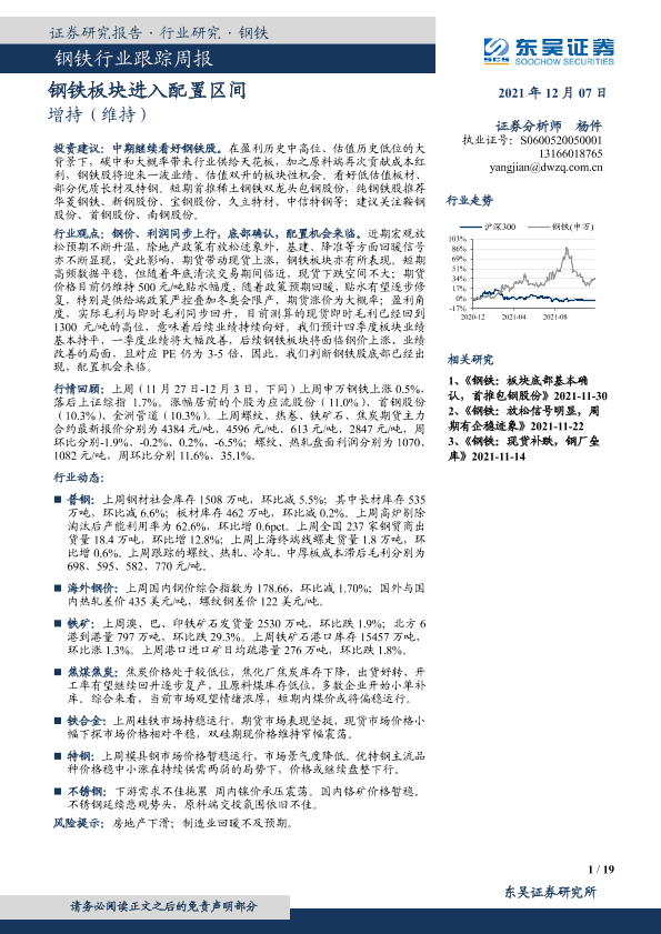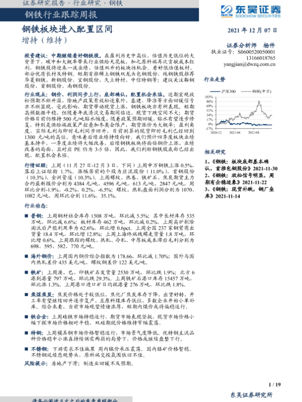 【东吴证券】【20211207】20211207-东吴证券-钢铁行业跟踪周报:钢铁板块进入配置区间-19页