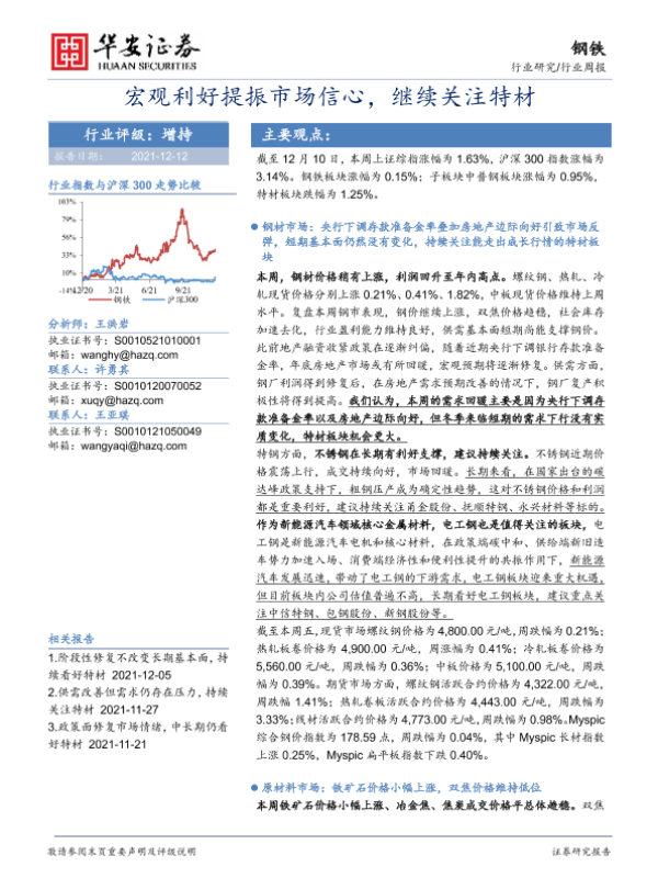 【华安证券】【20211212】20211212-华安证券-钢铁行业周报:宏观利好提振市场信心,继续关注特材-24页