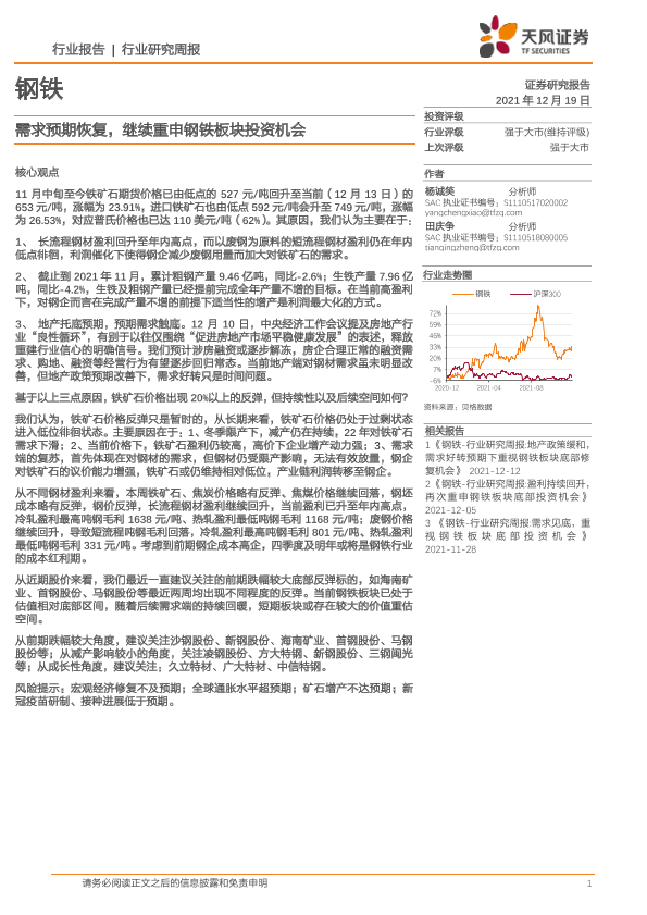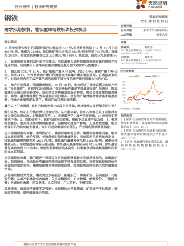 【天风证券】【20211219】钢铁:需求预期恢复,继续重申钢铁板块投资机会-13页