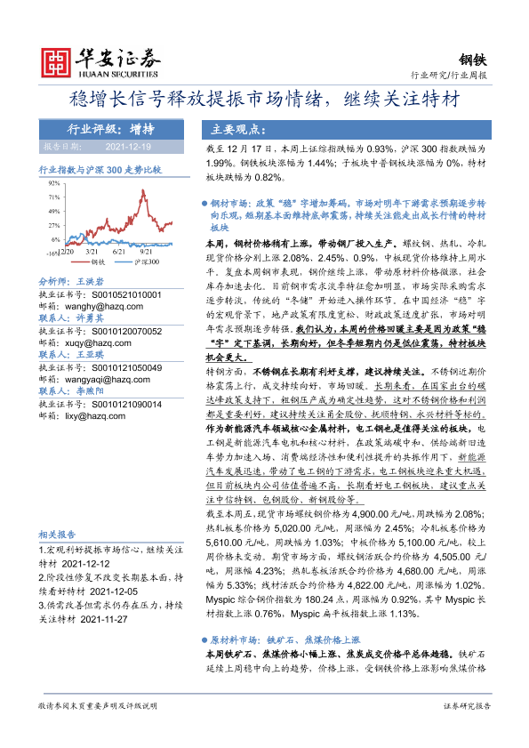 【华安证券】【20211219】20211219-华安证券-钢铁行业周报:稳增长信号释放提振市场情绪,继续关注特材-24页