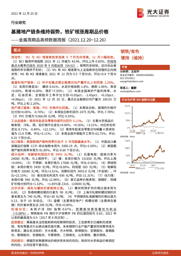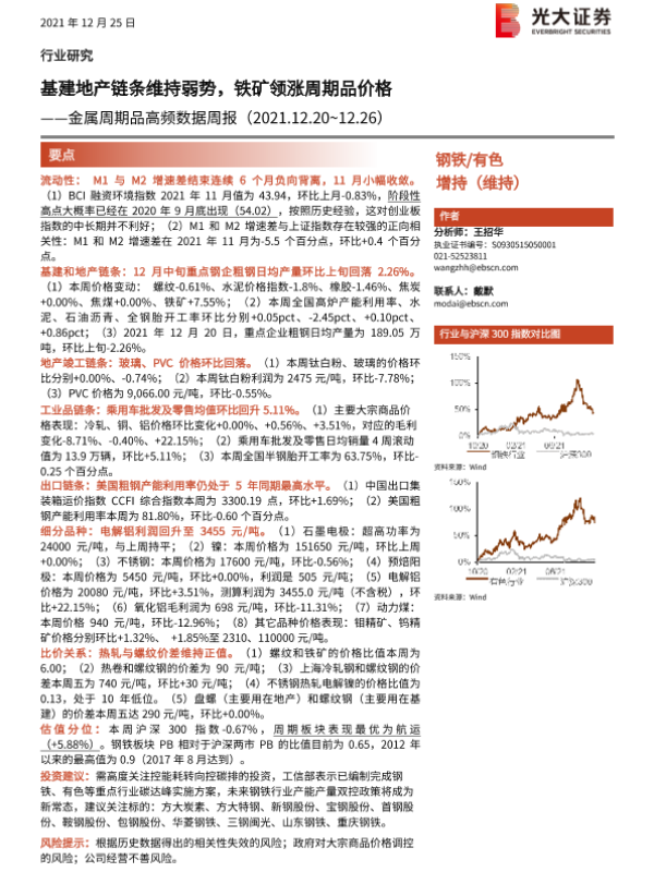 【光大证券】【20211225】金属周期品高频数据周报:基建地产链条维持弱势,铁矿领涨周期品价格-24页