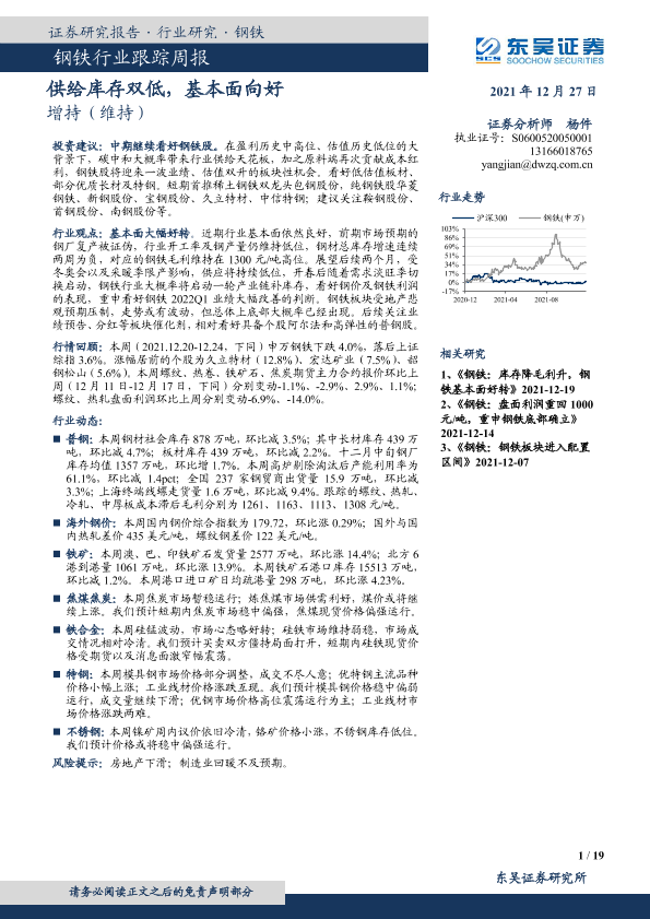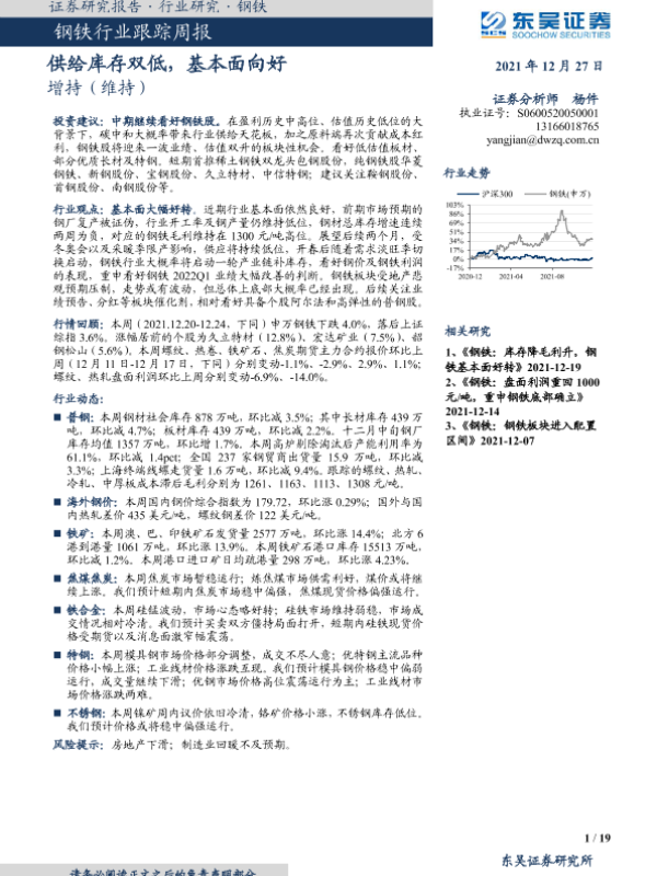 【东吴证券】【20211227】20211227-东吴证券-钢铁行业跟踪周报:供给库存双低,基本面向好-19页