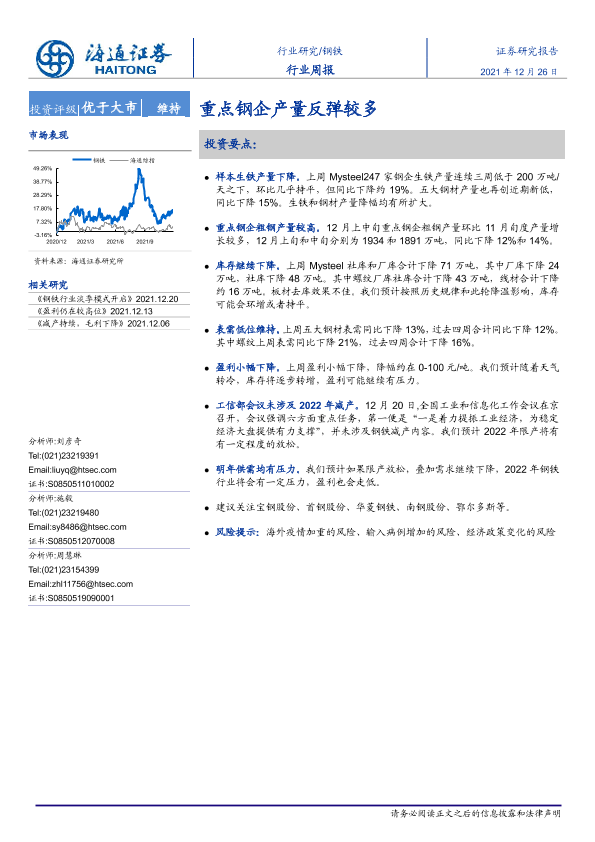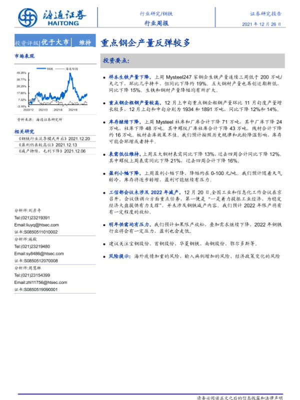 【海通证券】【20211226】20211226-海通证券-钢铁行业周报:重点钢企产量反弹较多-13页