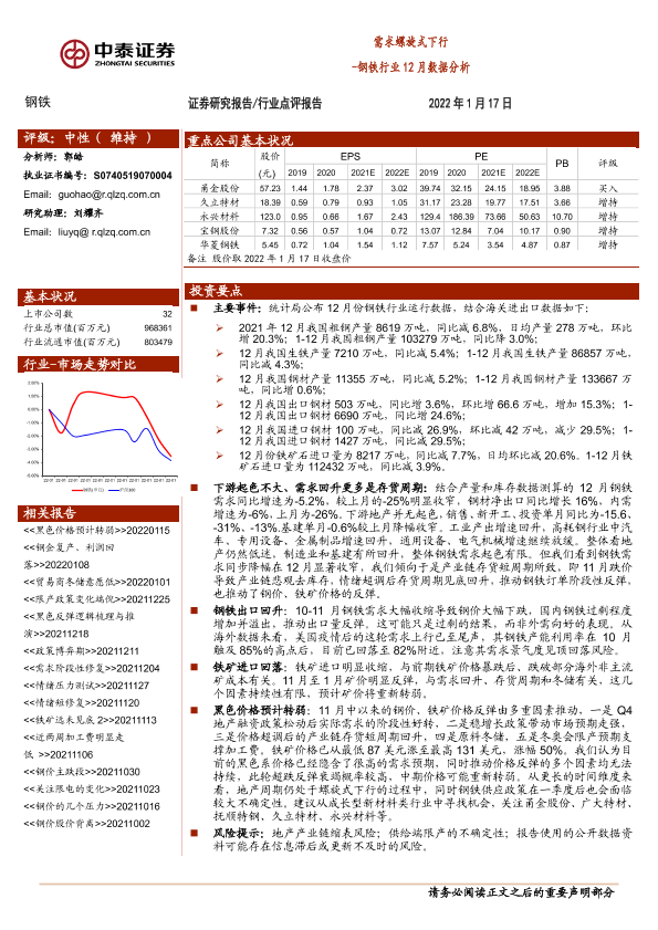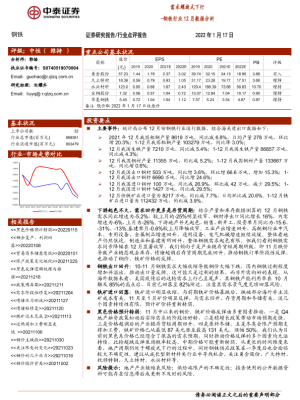 【中泰证券】【20220117】钢铁行业12月数据分析:需求螺旋式下行-4页