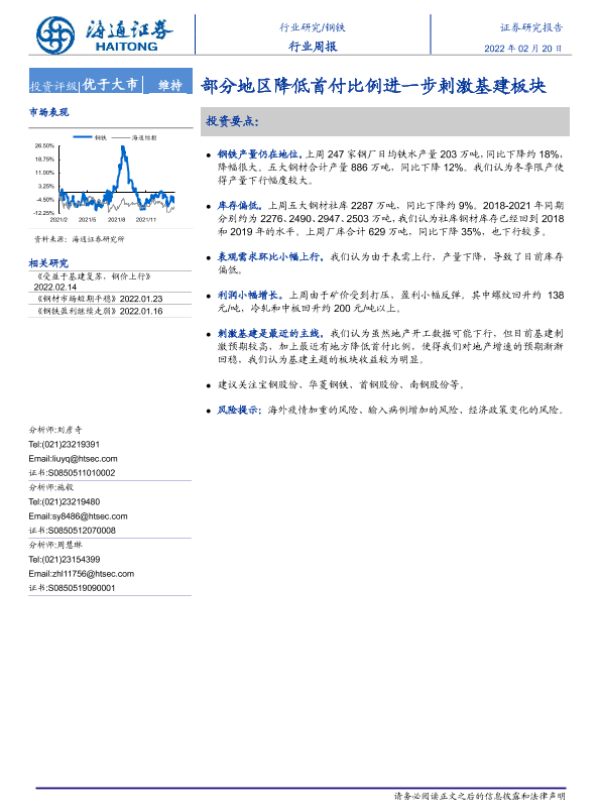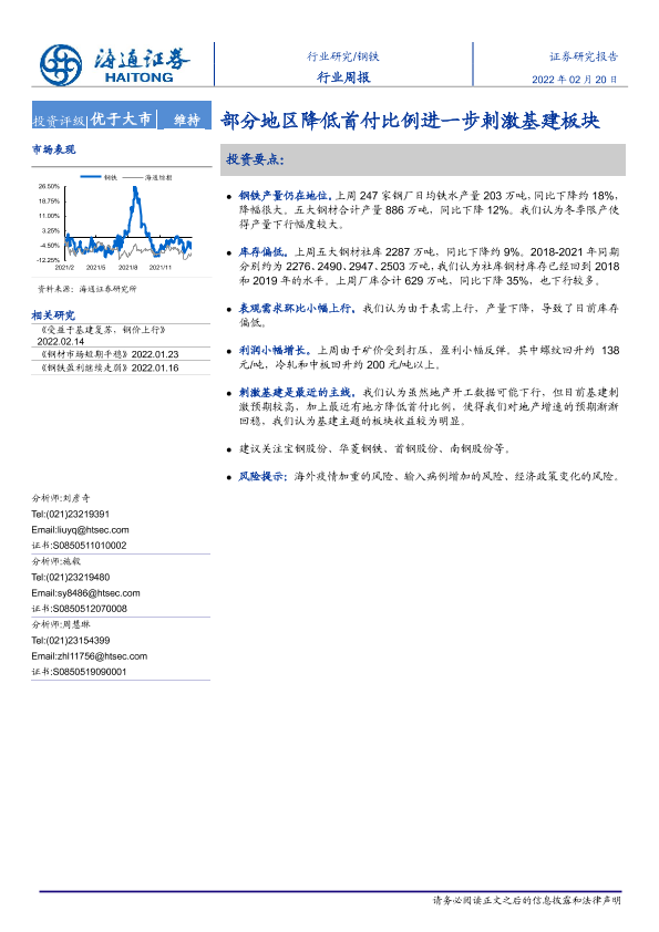 【海通证券】【20220220】20220220-海通证券-钢铁行业周报:部分地区降低首付比例进一步刺激基建板块-13页