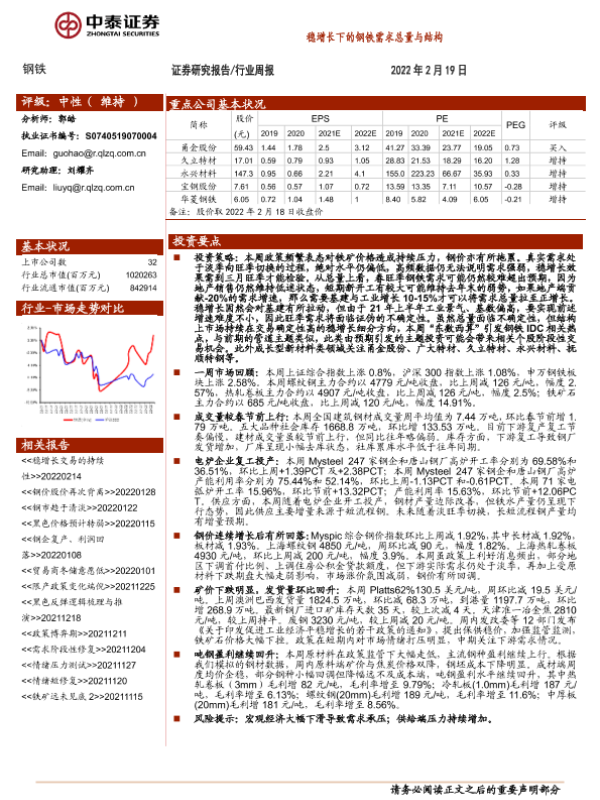 【中泰证券】【20220219】20220219-中泰证券-钢铁行业周报:稳增长下的钢铁需求总量与结构-12页