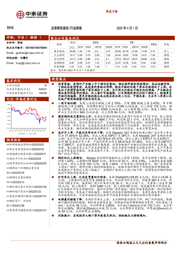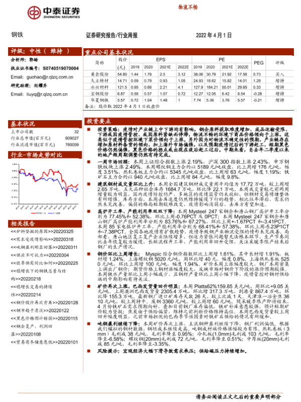 【中泰证券】【20220401】20220401-中泰证券-钢铁行业周报:物流不畅-12页