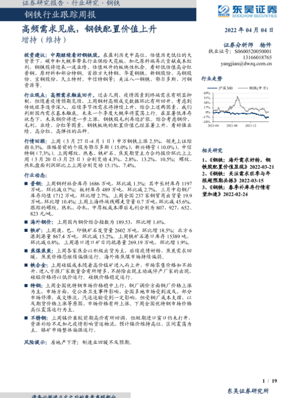 【东吴证券】【20220404】20220404-东吴证券-钢铁行业跟踪周报:高频需求见底,钢铁配置价值上升-19页