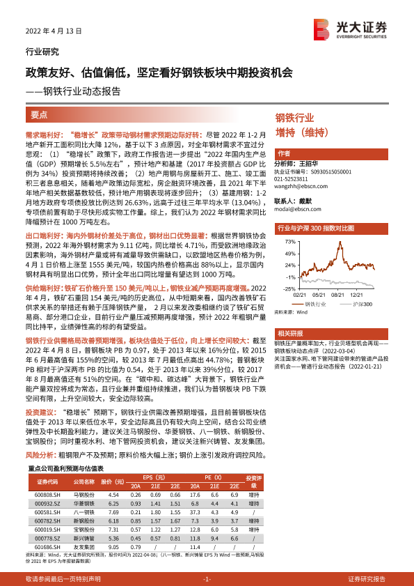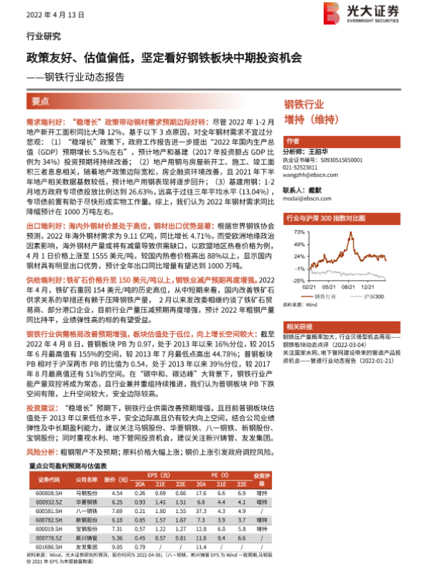 【光大证券】【20220413】20220413-光大证券-钢铁行业动态报告:政策友好、估值偏低,坚定看好钢铁板块中期投资机会-13页