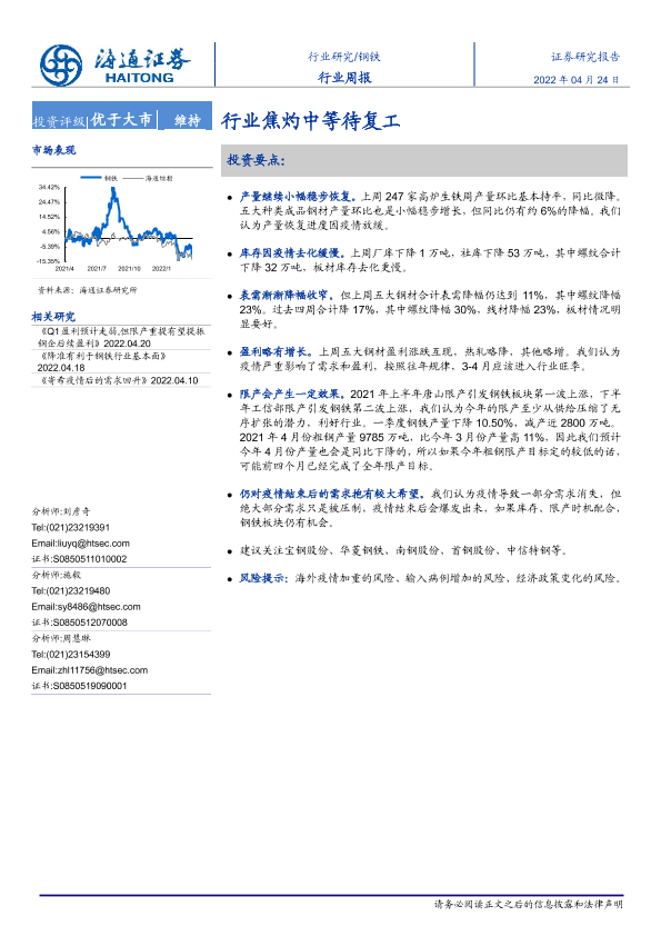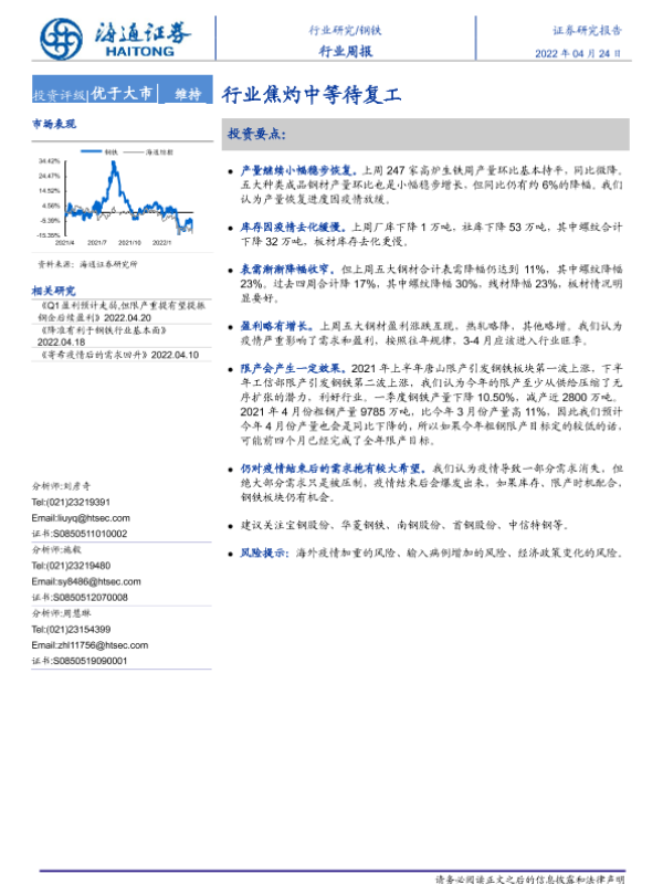【海通证券】【20220424】钢铁行业周报:行业焦灼中等待复工-13页