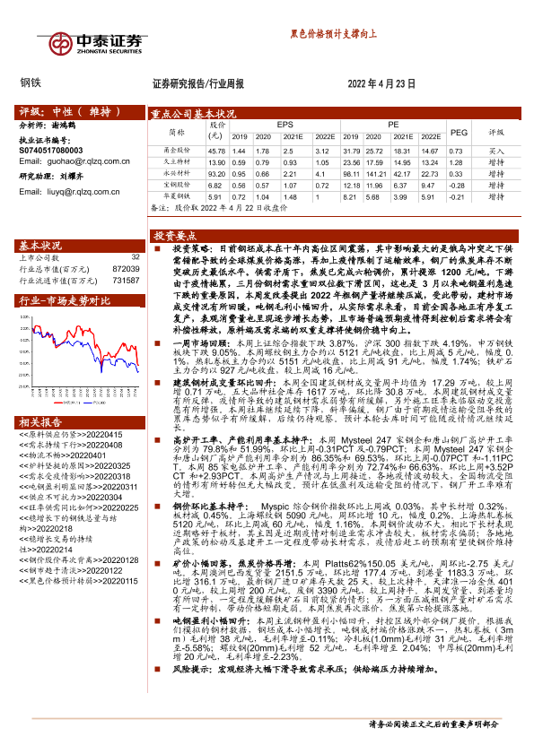 【中泰证券】【20220423】20220423-中泰证券-钢铁行业周报:黑色价格预计支撑向上-12页