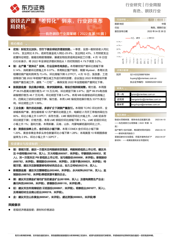 【东方证券】【20220426】20220426-东方证券-有色钢铁行业周策略(2022年第16周):钢铁去产量“差异化”到来,行业迎来布局良机-37页