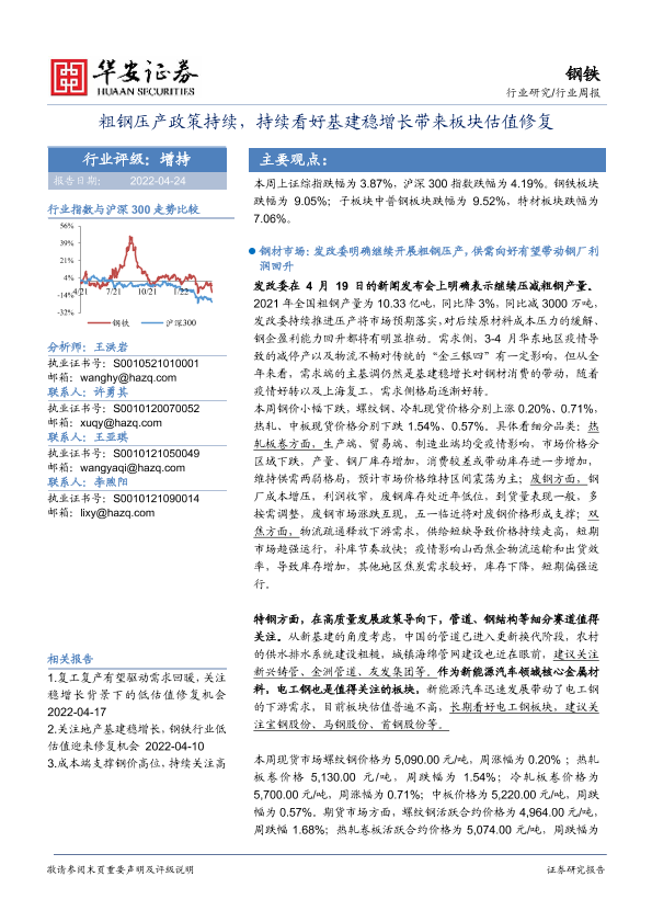 【华安证券】【20220424】20220424-华安证券-钢铁行业周报:粗钢压产政策持续,持续看好基建稳增长带来板块估值修复-24页
