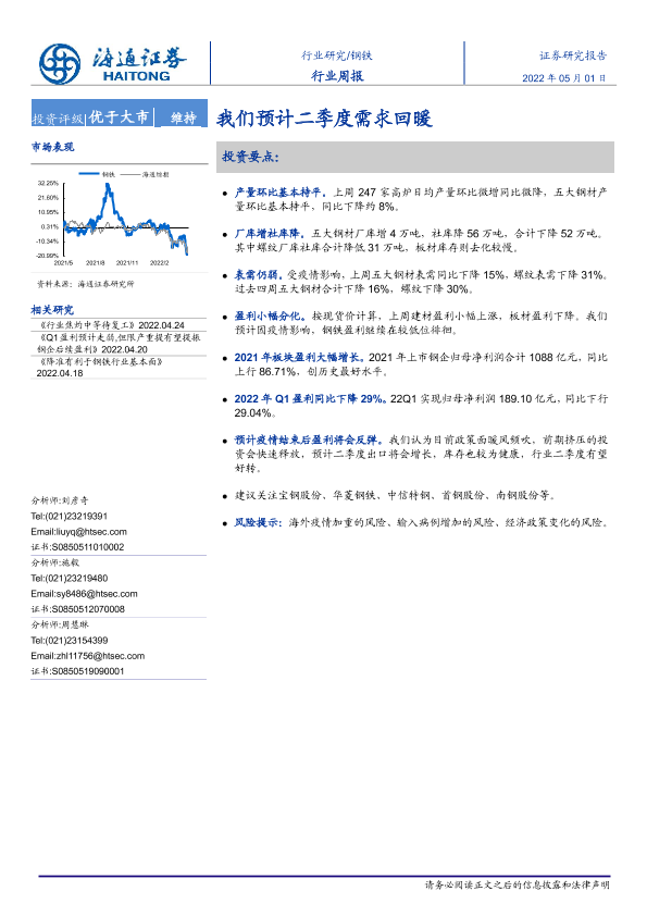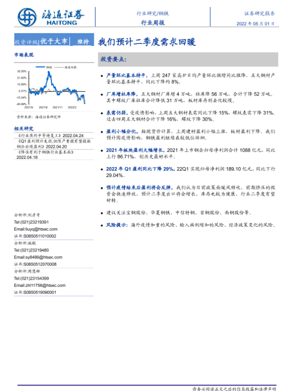 【海通证券】【20220501】20220501-海通证券-钢铁行业周报:我们预计二季度需求回暖-12页