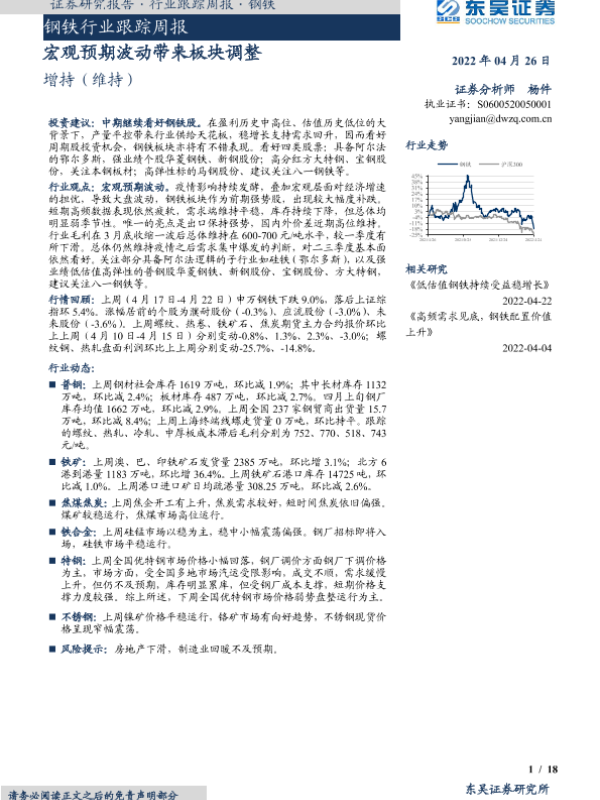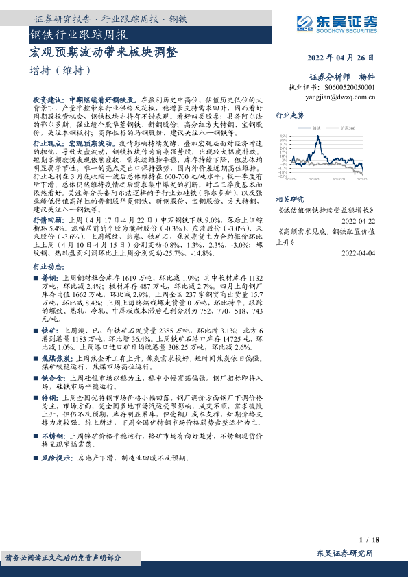 【东吴证券】【20220426】20220426-东吴证券-钢铁行业跟踪周报:宏观预期波动带来板块调整-18页