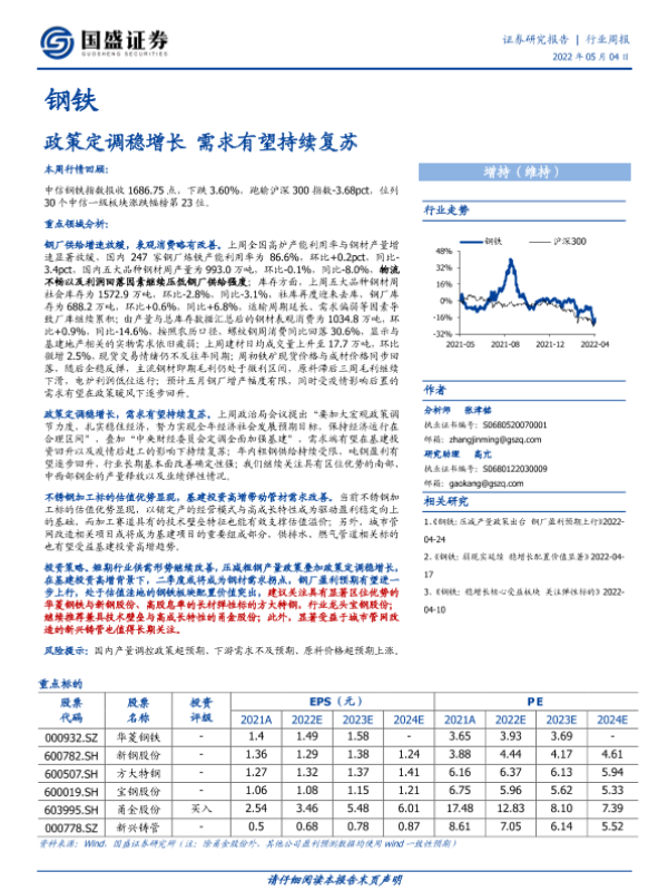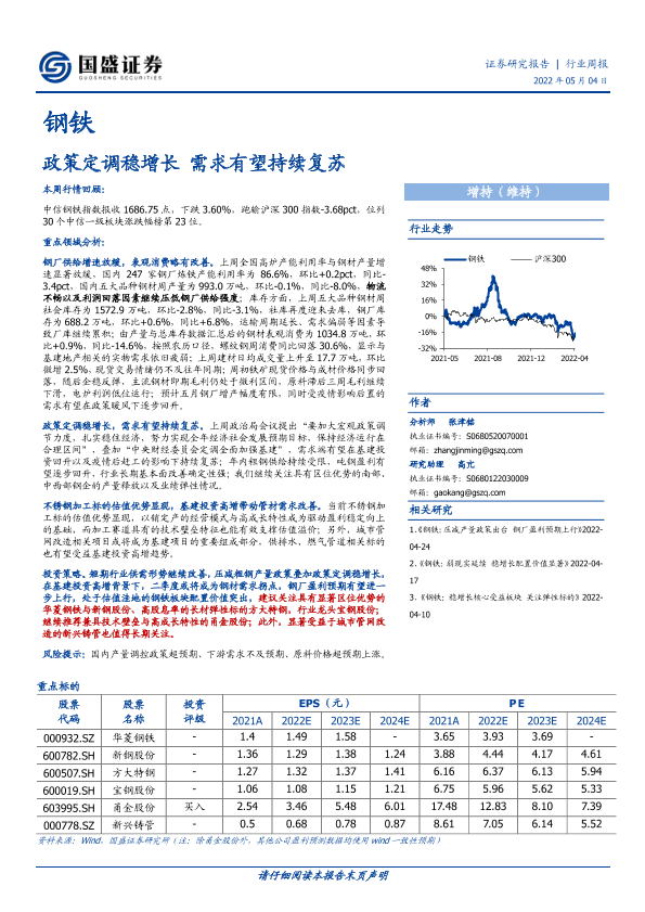 【国盛证券】【20220504】20220504-国盛证券-钢铁行业周报:政策定调稳增长 需求有望持续复苏-17页