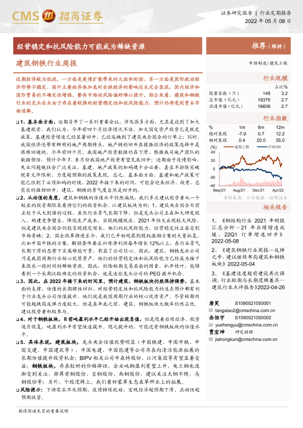 【海通证券】【20220508】建筑钢铁行业周报:经营稳定和抗风险能力可能成为稀缺资源-3页