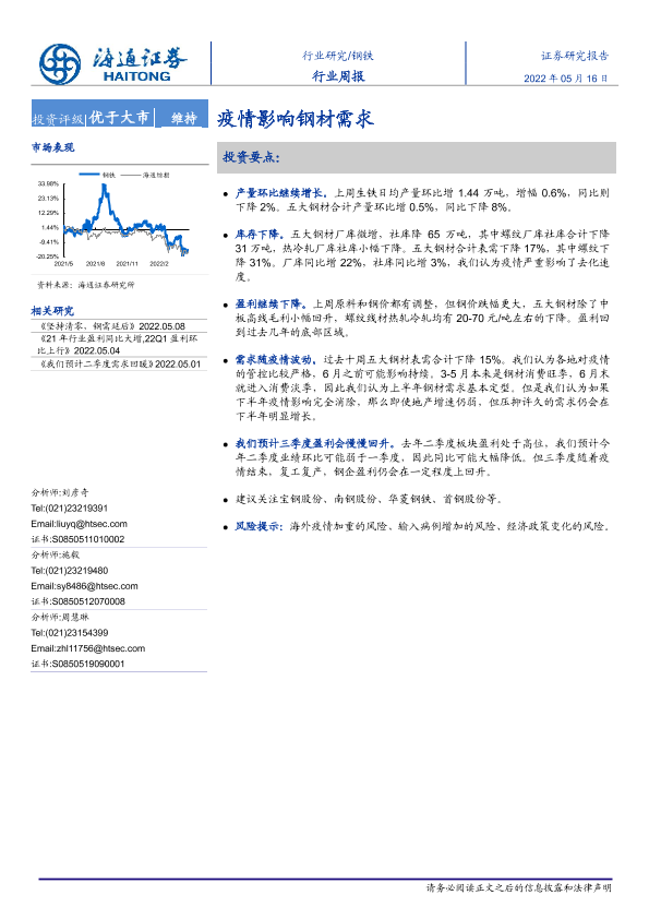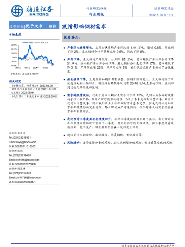 【海通证券】【20220516】20220516-海通证券-钢铁行业周报:疫情影响钢材需求-12页