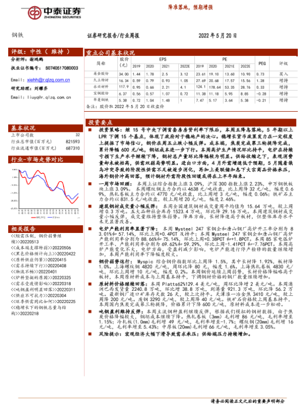 【中泰证券】【20220520】20220520-中泰证券-钢铁行业周报:降准落地,预期增强-12页