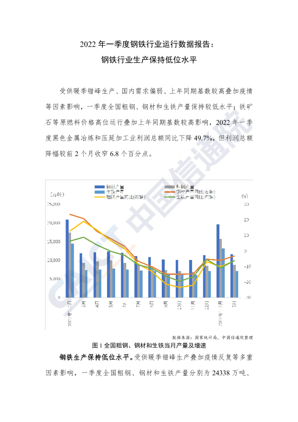 【中国信通院】【20220520】2022年一季度钢铁行业运行数据报告:钢铁行业生产保持低位水平-4页