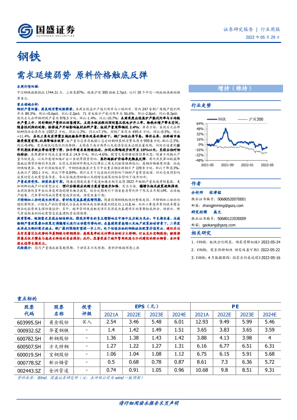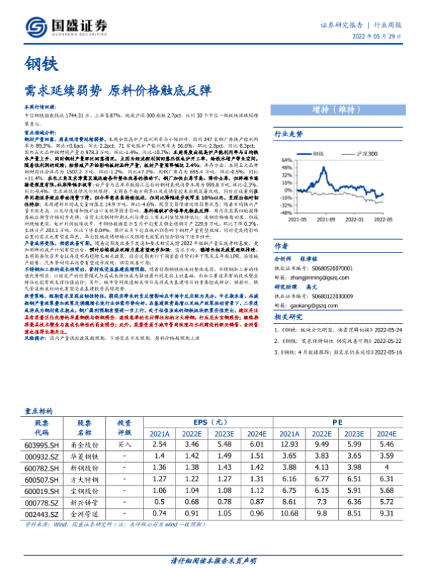 【国盛证券】【20220529】20220529-国盛证券-钢铁行业周报:需求延续弱势 原料价格触底反弹-15页