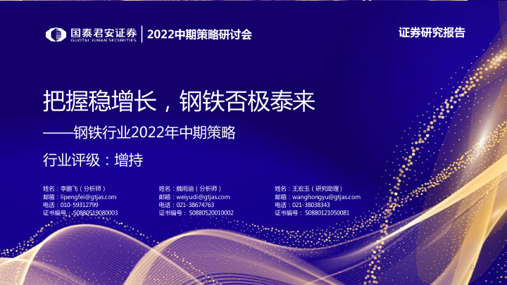 【国泰君安证券】【20220613】钢铁行业2022年中期策略:把握稳增长,钢铁否极泰来-28页