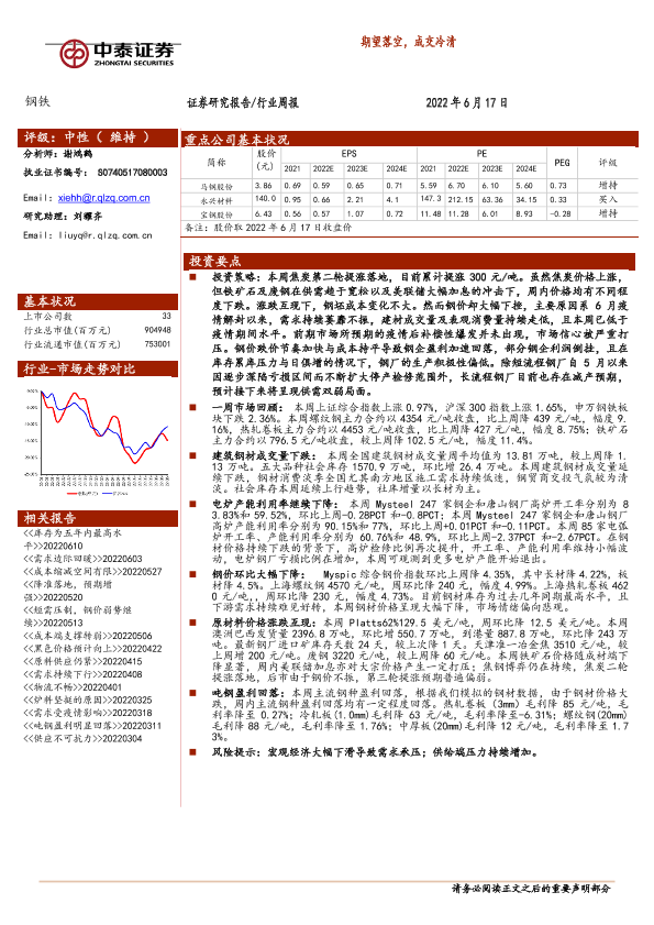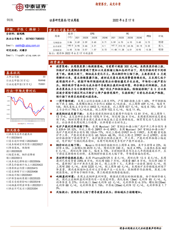 【中泰证券】【20220617】20220617-中泰证券-钢铁行业周报:期望落空,成交冷清-11页
