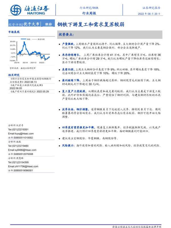 【海通证券】【20220620】20220620-海通证券-钢铁行业周报:钢铁下游复工和需求复苏较弱-12页