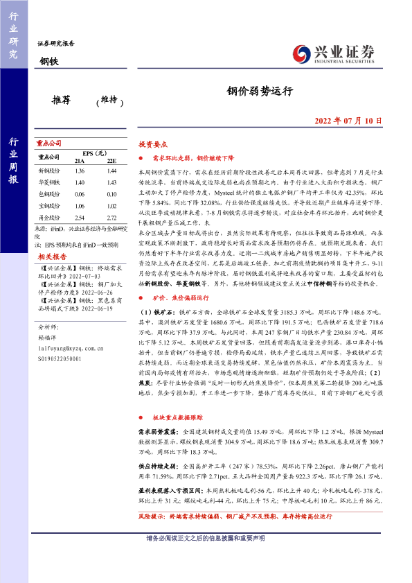 【兴业证券】【20220710】20220710-兴业证券-钢铁行业周报:钢价弱势运行-11页