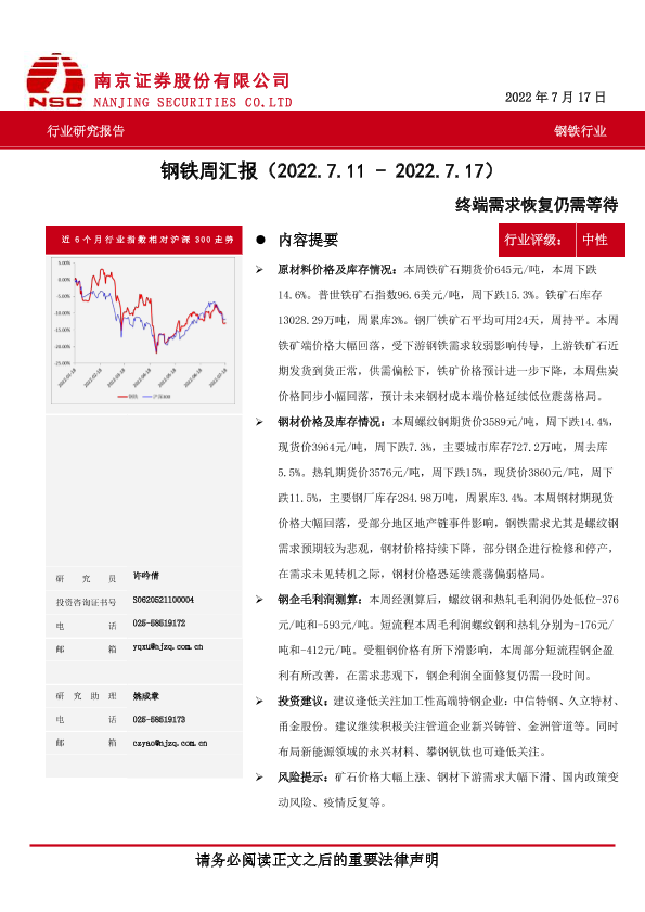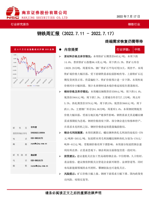 【南京证券】【20220717】20220717-南京证券-钢铁周汇报:终端需求恢复仍需等待-7页
