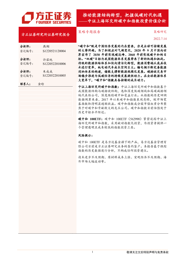 【方正证券】【20220714】中证上海环交所碳中和指数投资价值分析:推动能源结构转型,把握低碳时代机遇-18页