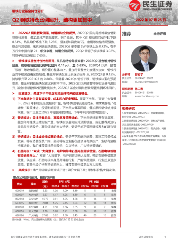 【民生证券】【20220725】20220725-民生证券-钢铁行业基金持仓分析:Q2钢铁持仓比例回升,结构更加集中-10页