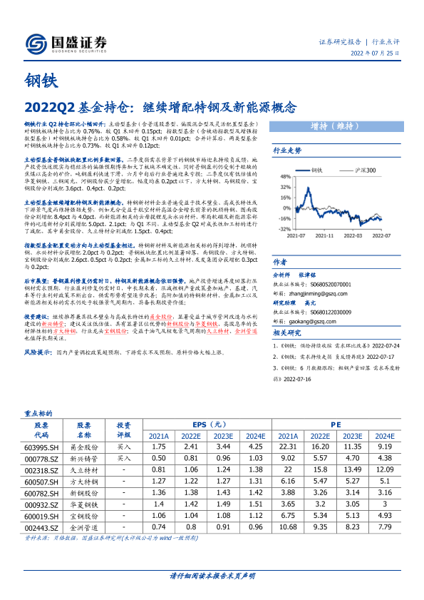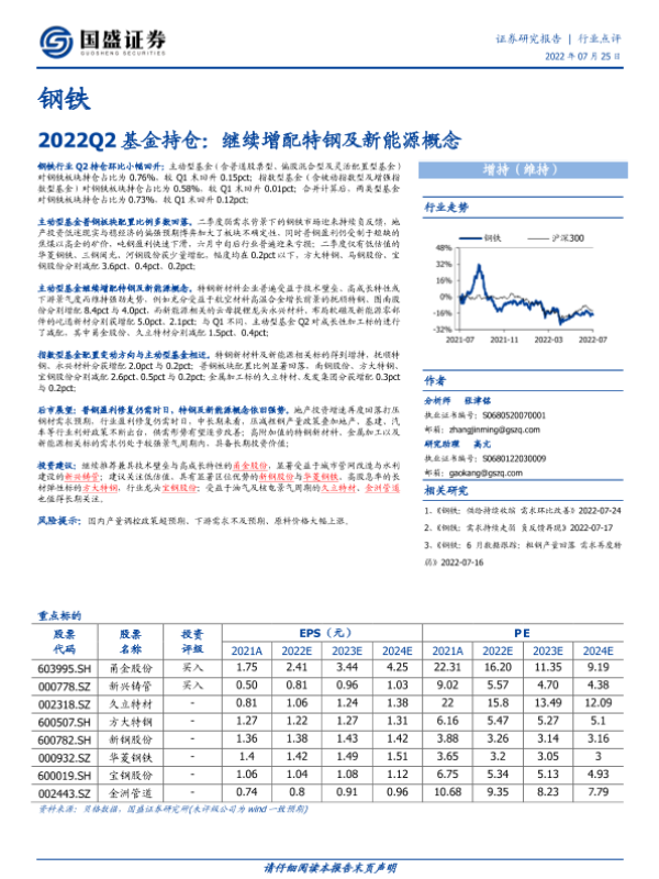 【国盛证券】【20220725】钢铁2022Q2基金持仓:继续增配特钢及新能源概念-4页