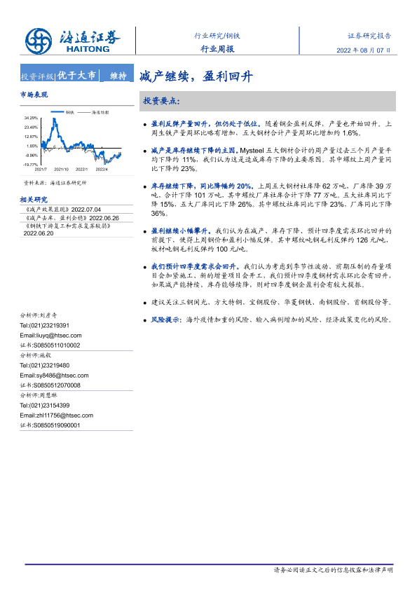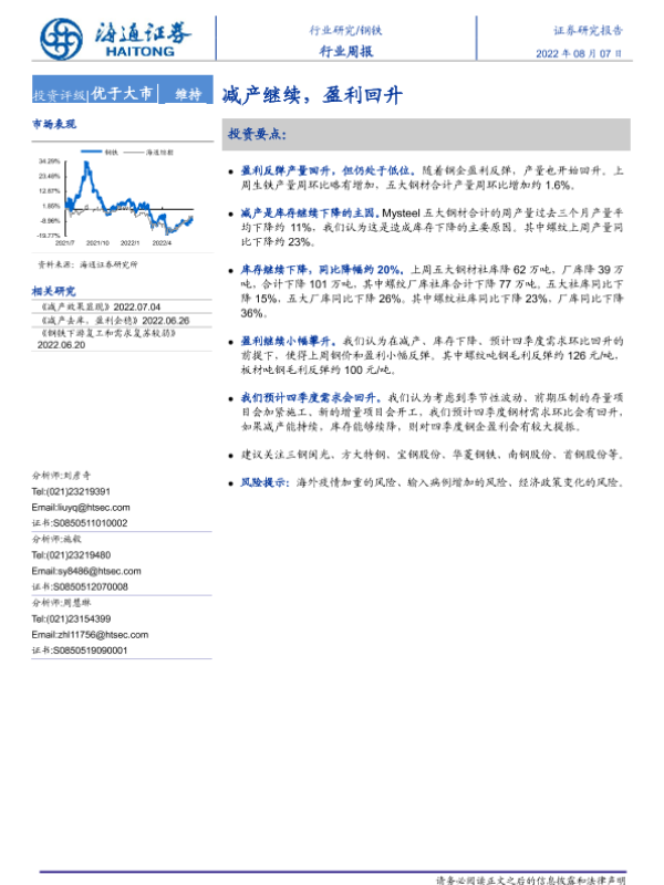 【海通证券】【20220807】20220807-海通证券-钢铁行业周报:减产继续,盈利回升-12页